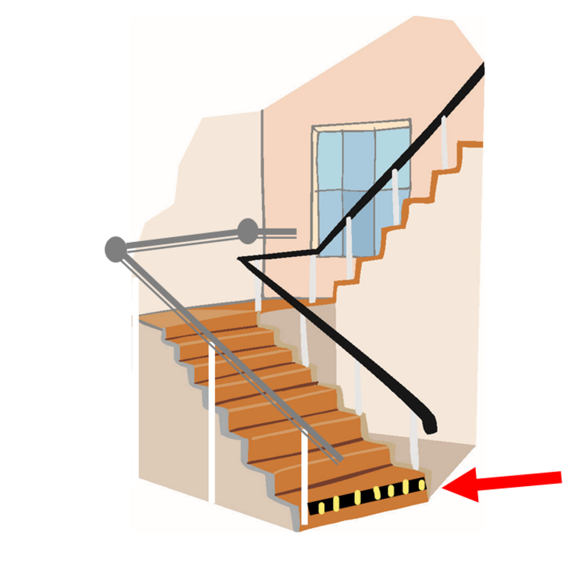 Die Hand-Läufe fangen an der 1. Treppen-Stufe an.